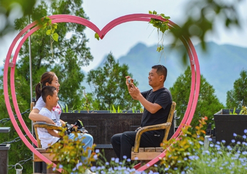 2021年5月30日,游客在河北省邯鄲市磁縣天保寨景區(qū)游玩。新華社記者 王曉 攝