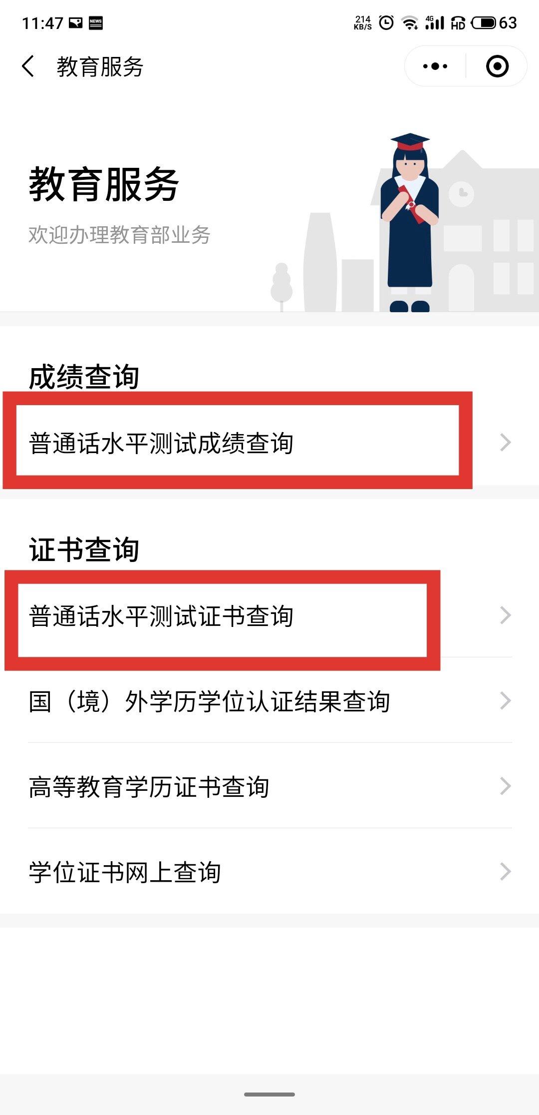第二步:點(diǎn)擊『普通話水平測(cè)試成績(jī)查詢』