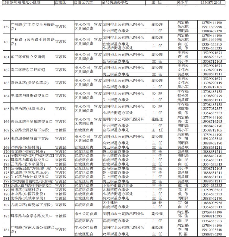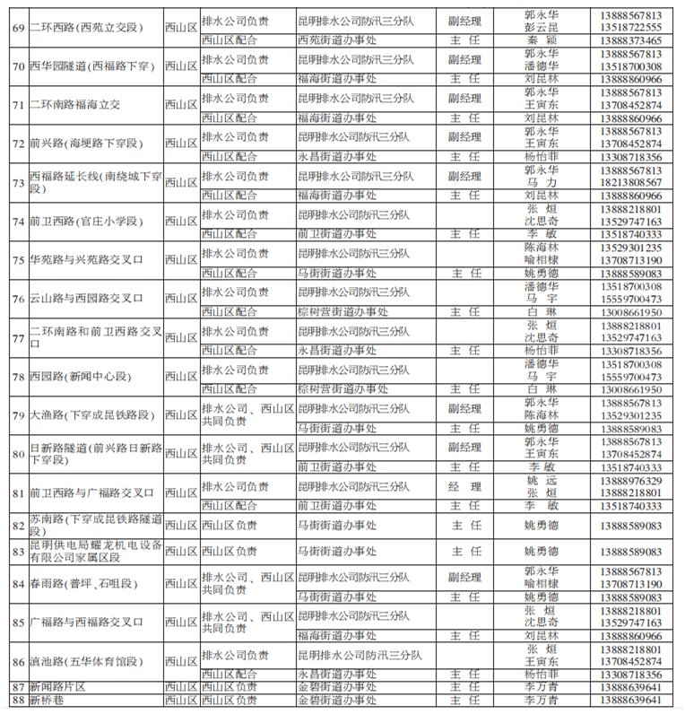 昆明市有多個淹水點(附負責(zé)人電話/名單)