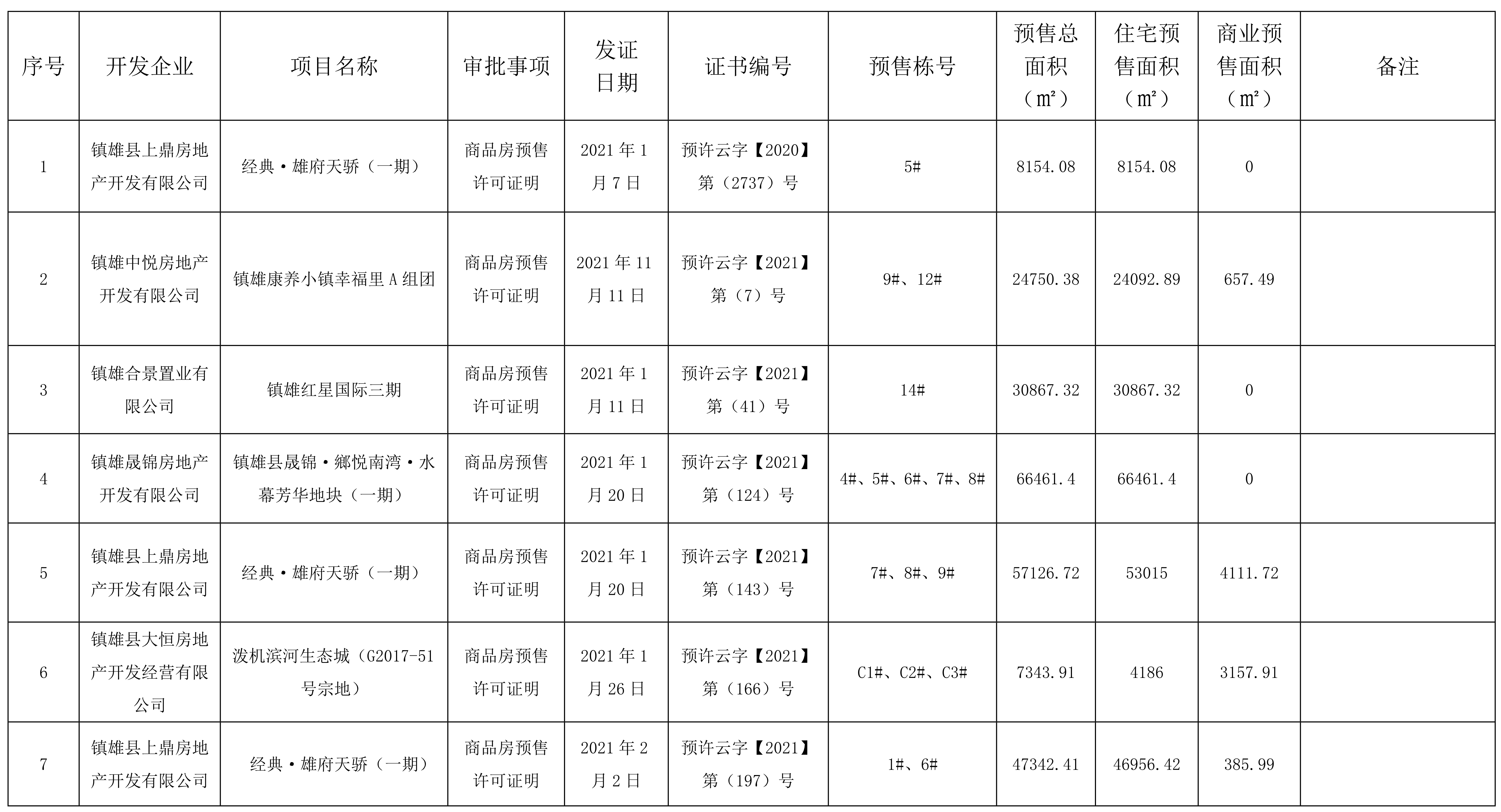 昭通市鎮(zhèn)雄縣住房和城鄉(xiāng)建設(shè)局關(guān)于2021年1月1日至2021年6月31日《商品房預(yù)售許可證明》辦理情況