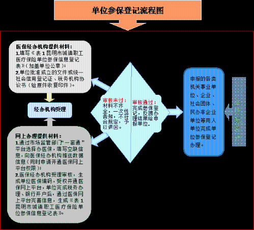 2.醫(yī)保經(jīng)辦機(jī)構(gòu)受理審核,生成單位醫(yī)保編碼,受權(quán)開(kāi)通醫(yī)保網(wǎng)上平臺(tái),單位完成稅務(wù)辦理、銀行開(kāi)戶(hù)后,通過(guò)醫(yī)保網(wǎng)上平臺(tái)完善信息,生成《表1昆明市城鎮(zhèn)職工醫(yī)療保險(xiǎn)單位參保信息登記表》。