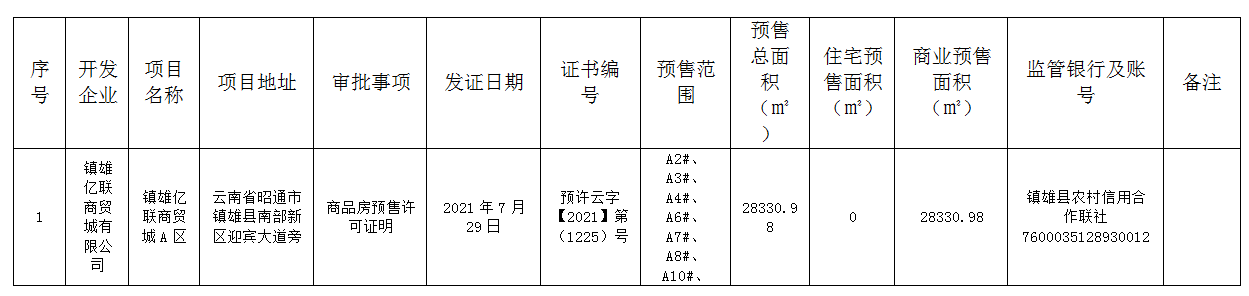 鎮(zhèn)雄縣住房和城鄉(xiāng)建設(shè)局關(guān)于鎮(zhèn)雄億聯(lián)商貿(mào)城A區(qū)《商品房預(yù)售許可證明》辦理情況的通告