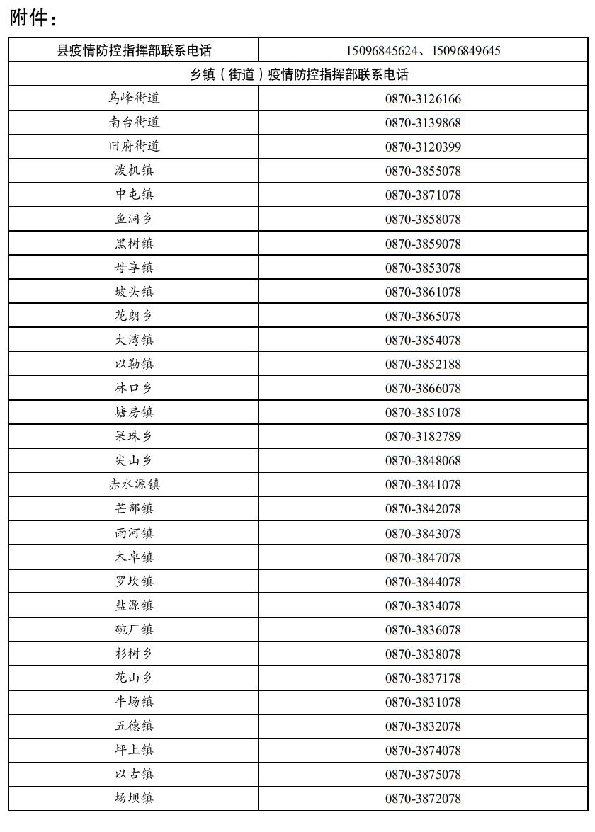 附件:縣疫情防控指揮部及各鄉(xiāng)鎮(zhèn)(街道)疫情防控指揮部聯(lián)系電話