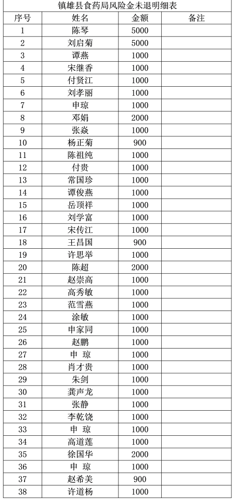 鎮(zhèn)雄縣市場監(jiān)督管理局關于退還保證金的公告