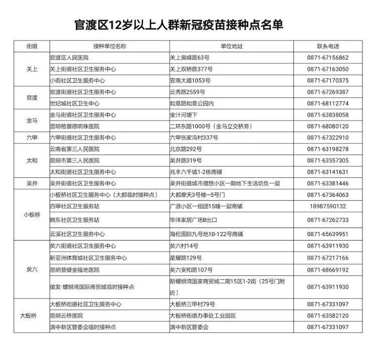 6.請接種完新冠疫苗第一劑次的青少年在接種21天后按時到官渡區(qū)接種點接種第二劑。