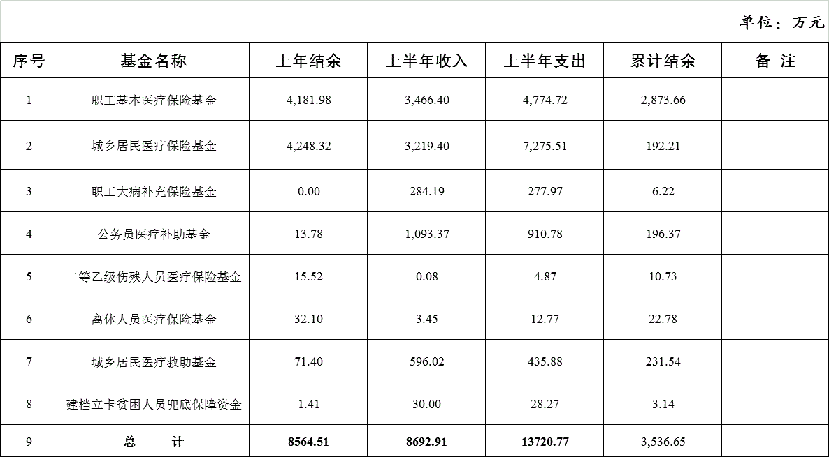 大理市永平縣醫(yī)療保險服務中心2021年上半年各項基金收支結(jié)余情況公開
