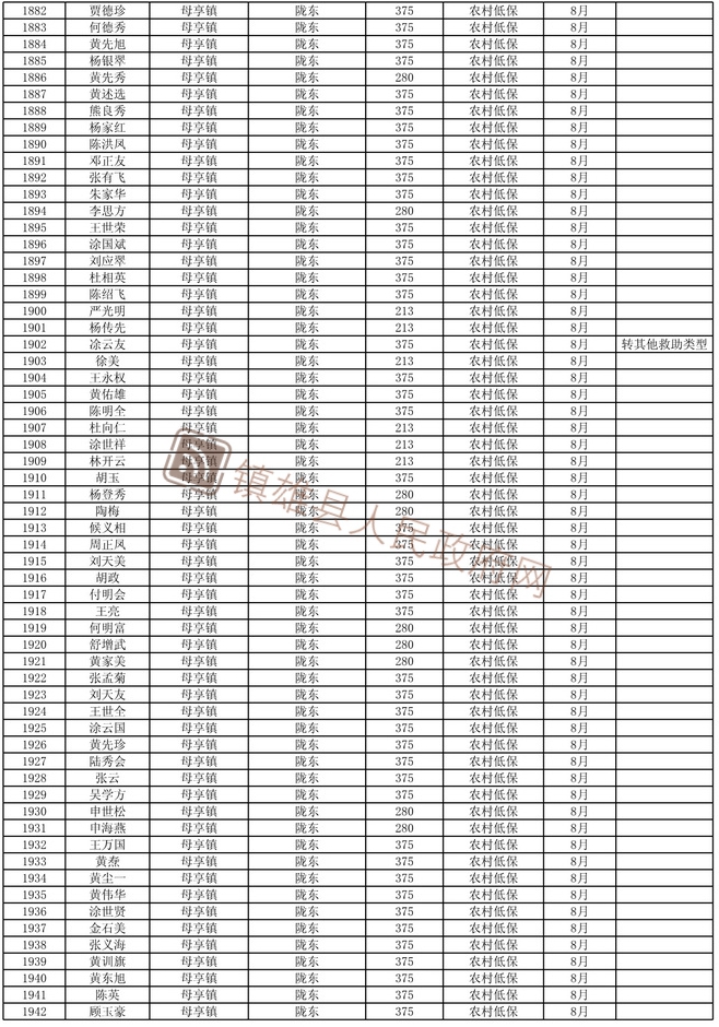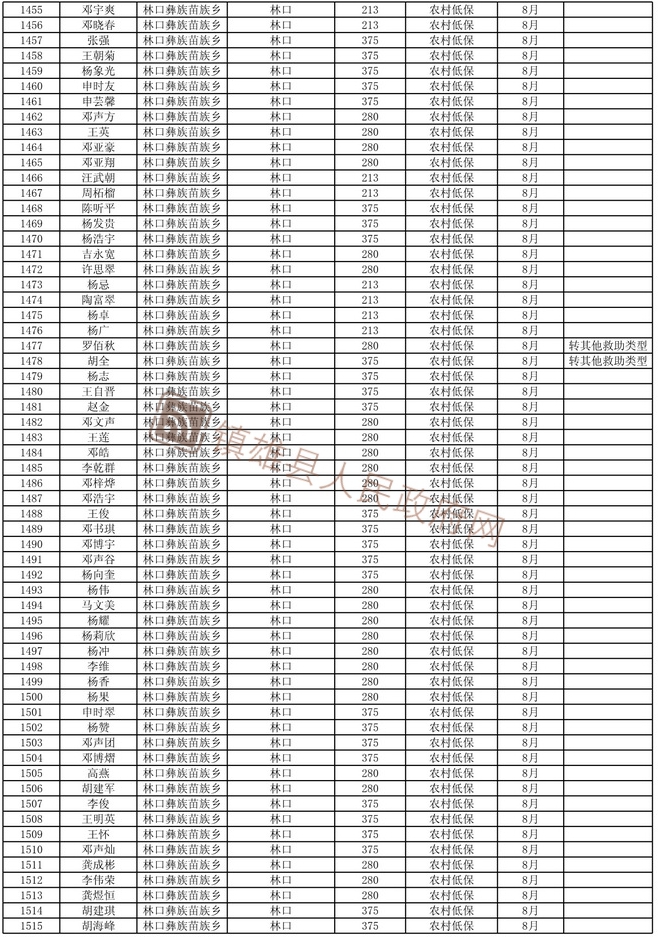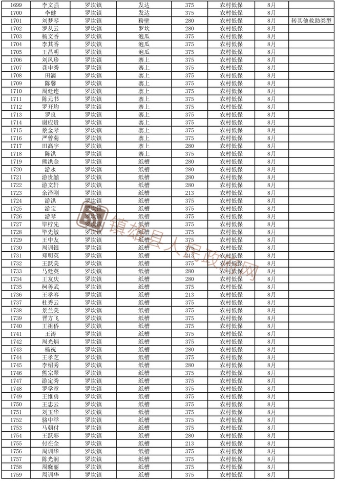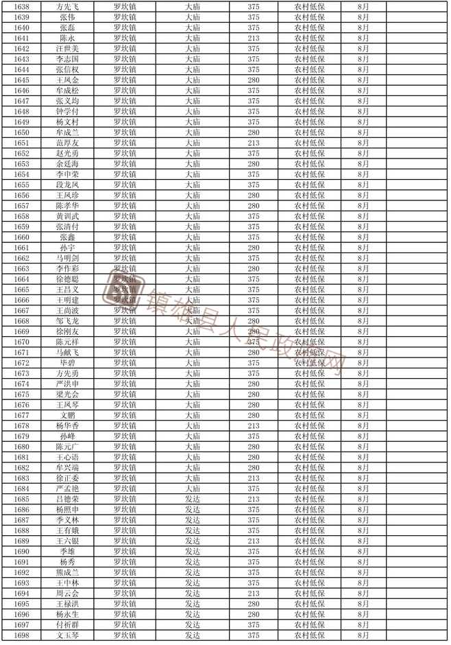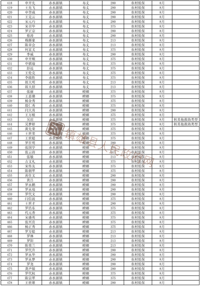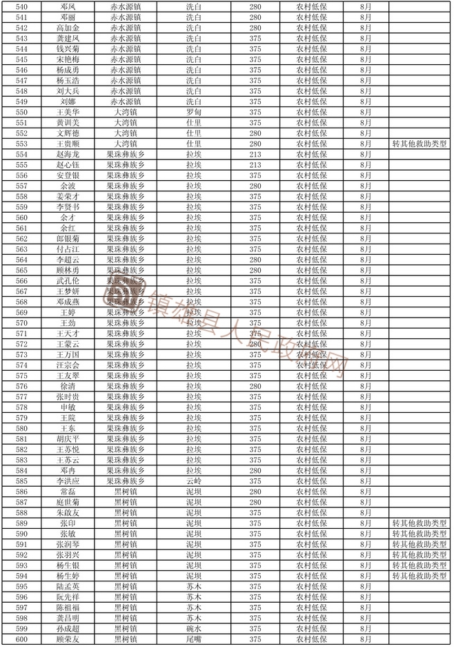 根據(jù)《鎮(zhèn)雄縣陽光低保專項行動實施方案》,我縣城鄉(xiāng)低保及特困人員救助金發(fā)放按動態(tài)管理后的名單執(zhí)行,F(xiàn)將2021年8月退出城鄉(xiāng)低保的名單及特困人員名單予以長期公示,今后根據(jù)動態(tài)情況適時更新。公示期間,如對城鄉(xiāng)低保人員及特困人員有異議的,請向有關(guān)單位舉報。