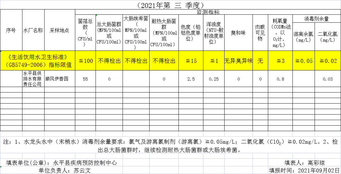 大理市永平縣城市水廠末梢水水質(zhì)信息