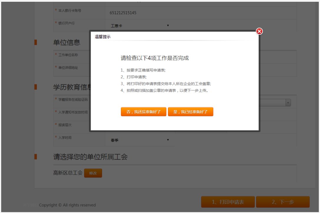 需要填寫的內(nèi)容:1、基本信息,2、單位信息,3、學歷信息;注意:再次確認單位工會所屬的區(qū)總工會,產(chǎn)業(yè)、直屬單位工會信息,如有錯誤及時進行修改。