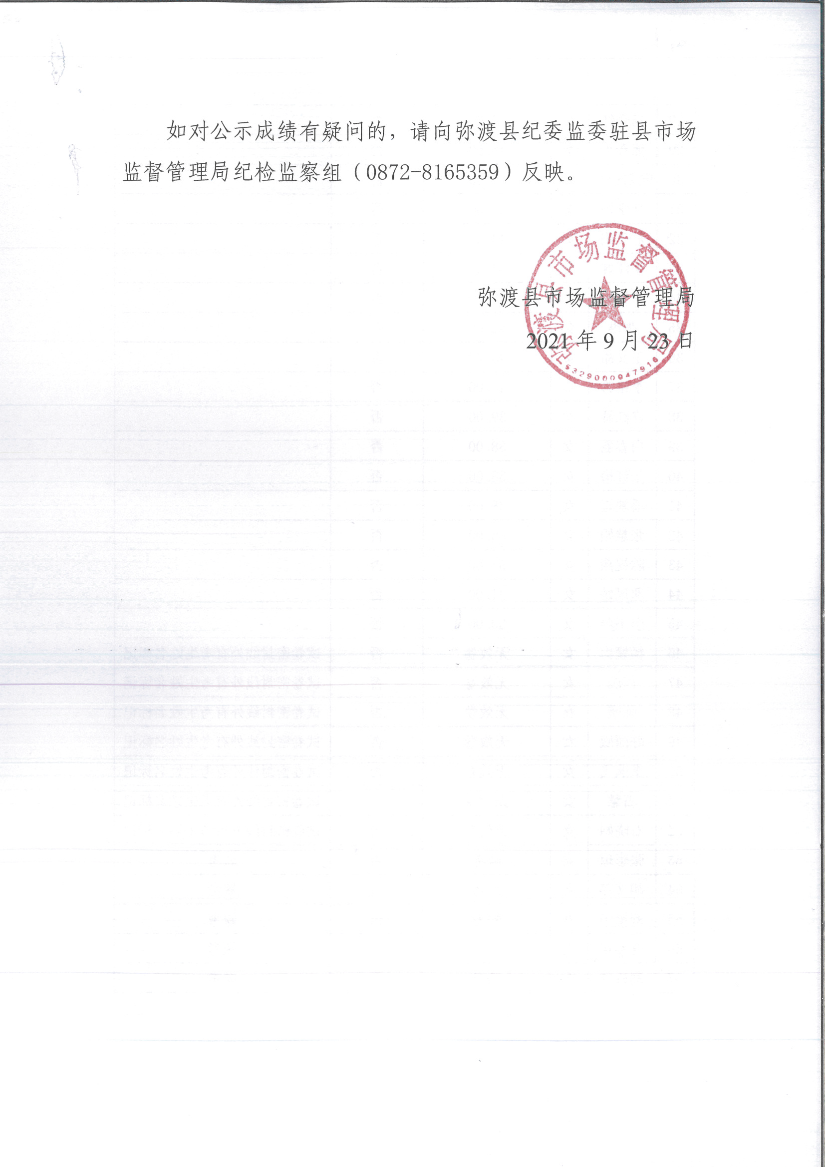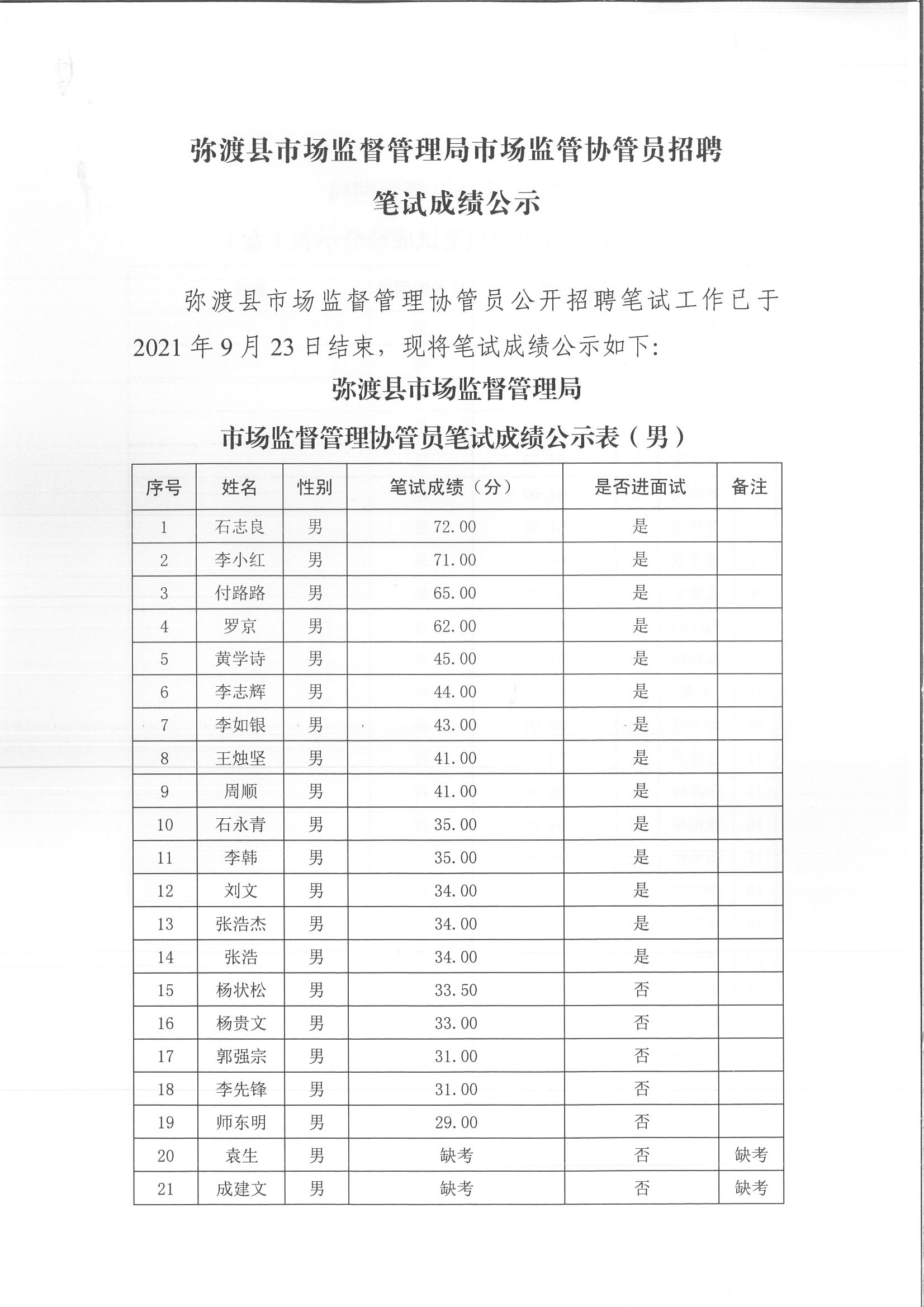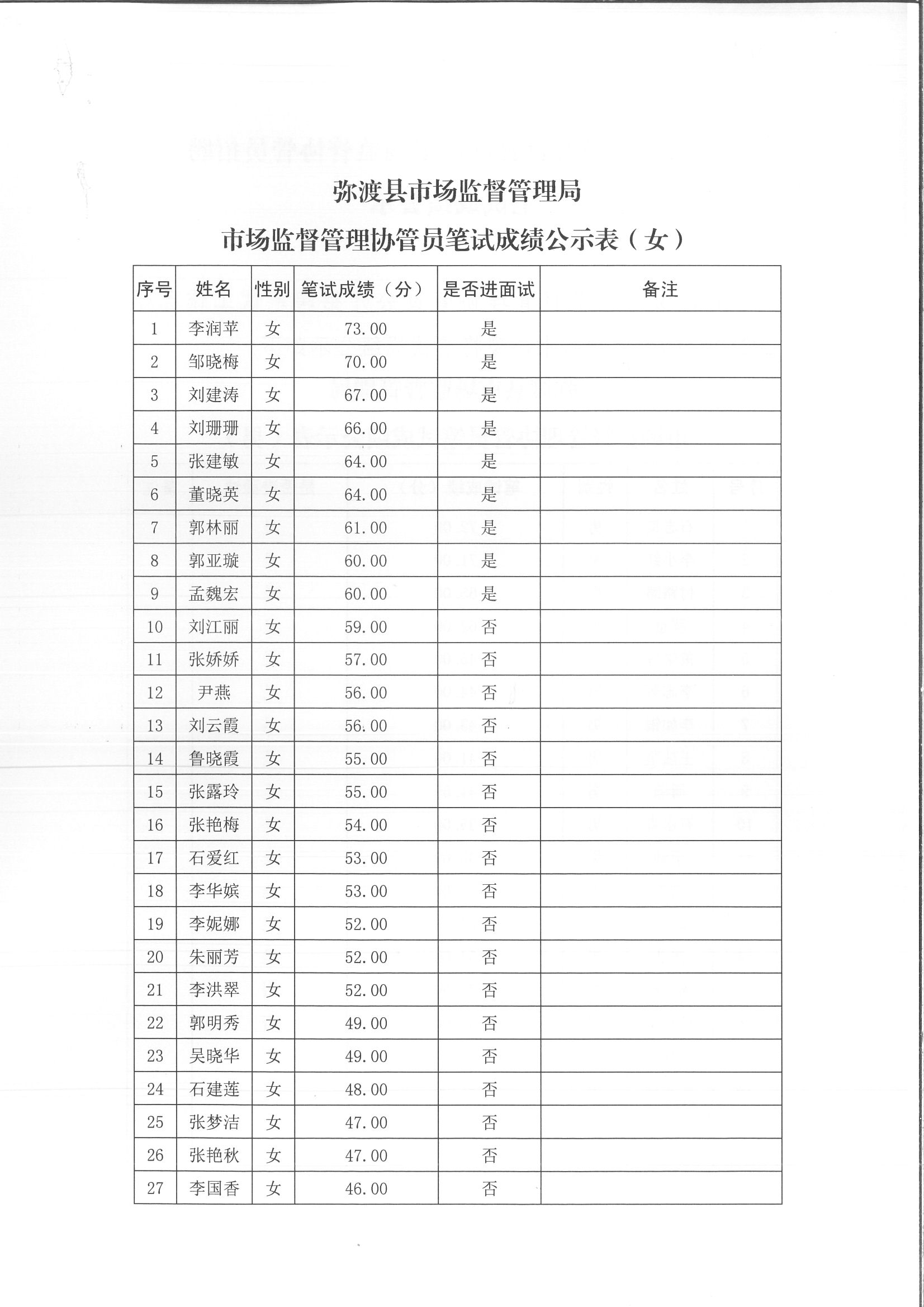 大理市彌渡縣市場監(jiān)督管理局市場監(jiān)管協(xié)管員招聘筆試成績公示