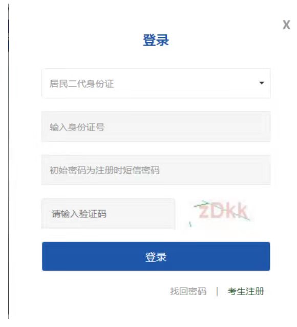 3.到了考生登錄頁面,按要求填寫“身份證號碼”、“初始密碼”、“驗證碼”,確認無誤后點擊“登錄”條目。