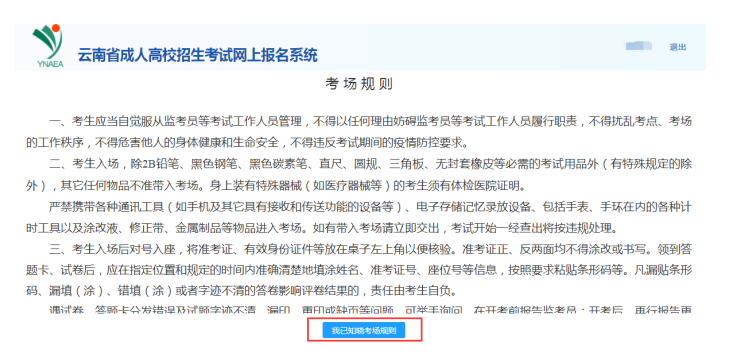 7.接下來考生要仔細閱讀《考場規(guī)則》,點擊“我已知曉考場規(guī)則”按鈕。