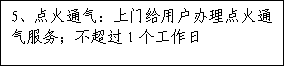 對已具備通氣條件客戶可預(yù)約點(diǎn)火,3個(gè)工作日內(nèi)完成點(diǎn)火開通服務(wù)。