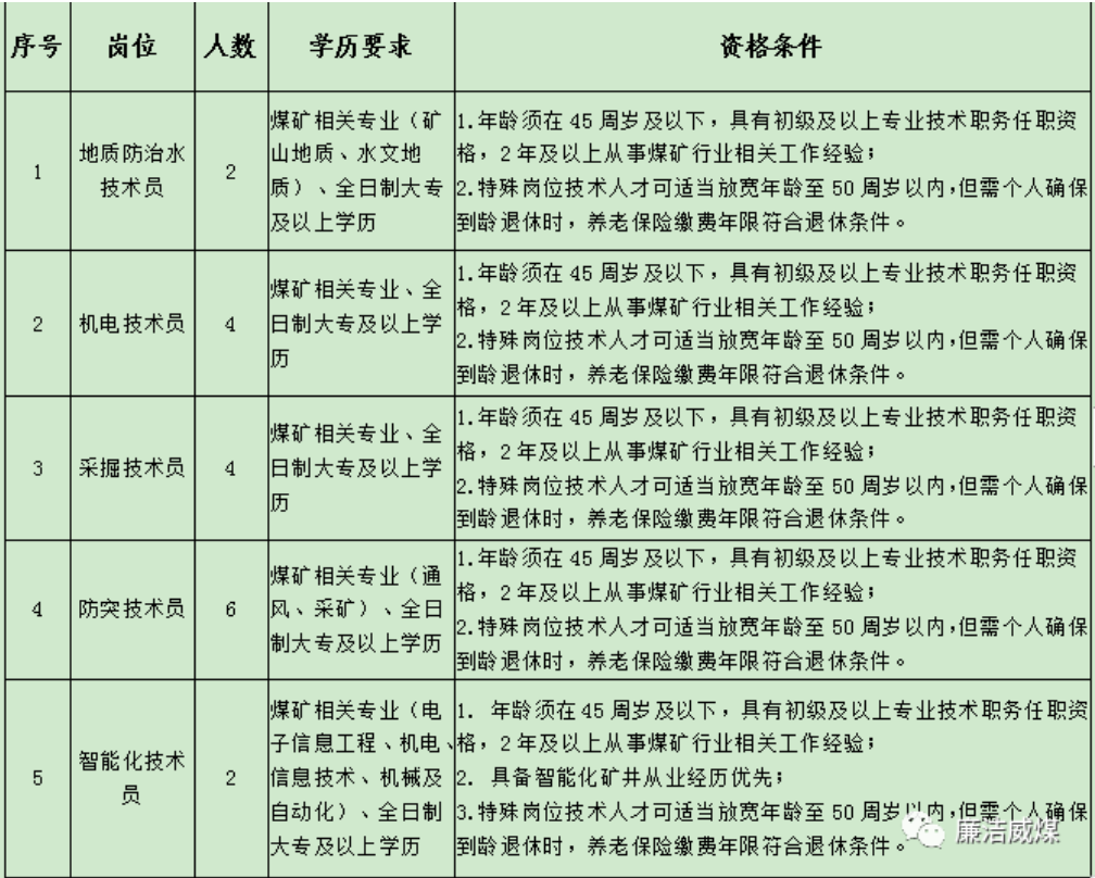 云南能投威信煤炭有限公司計(jì)劃招聘專業(yè)技術(shù)人才18名,具體招聘崗位及資格條件下表: