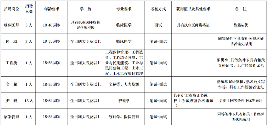為進一步加強醫(yī)院人才隊伍建設(shè),不斷滿足醫(yī)院業(yè)務(wù)發(fā)展需要,經(jīng)研究決定,面向社會公開招聘合同制人員24人,現(xiàn)將有關(guān)事項作如下通告: