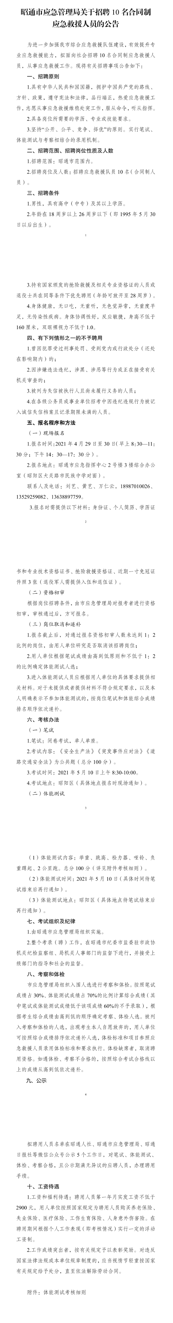 昭通市應(yīng)急管理局關(guān)于招聘10名合同制應(yīng)急救援人員的公告