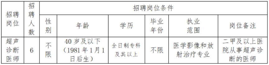 為使醫(yī)院人力資源配置適應(yīng)醫(yī)院業(yè)務(wù)發(fā)展需求,保障醫(yī)療安全,提高服務(wù)質(zhì)量,滿足廣大人民群眾日益增長的醫(yī)療衛(wèi)生需求,我院決定招聘超聲醫(yī)學(xué)科編制外工作人員,具體事項(xiàng)如下: