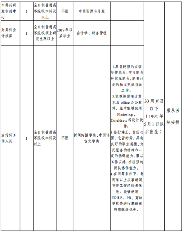 為進一步加強人才隊伍建設,促進醫(yī)院科學發(fā)展,根據(jù)我院業(yè)務發(fā)展需要,計劃招聘以下崗位人員。