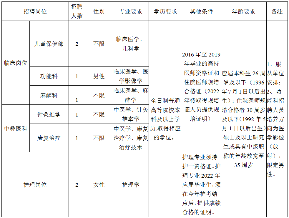 楚雄州婦幼保健院2022年編外職工招聘公告