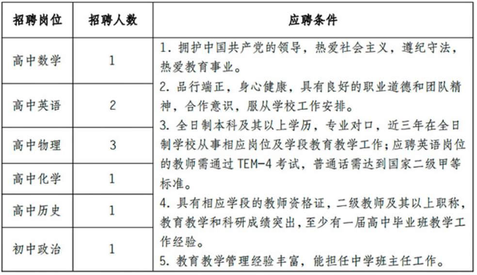 注:男教師年齡在40歲以下,女教師年齡在35歲以下。滿足以下條件之一并取得相關(guān)證件者,年齡可適當放寬,同等條件下予以優(yōu)先考慮。