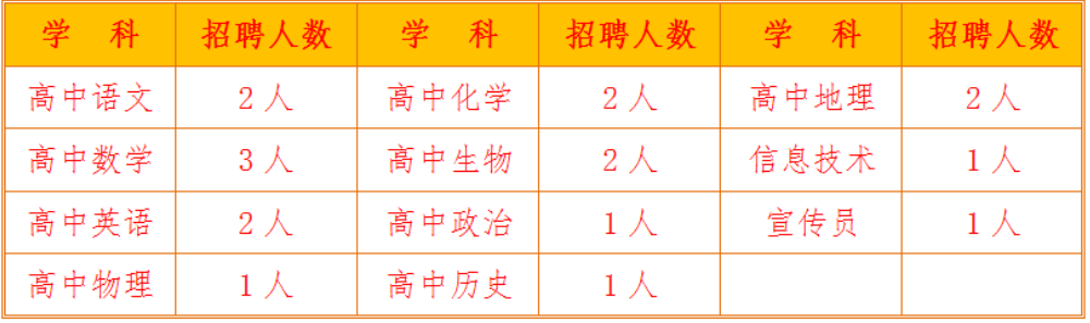 為適應(yīng)學(xué)校進(jìn)一步發(fā)展的需要,適當(dāng)擴(kuò)大高中招生,儲(chǔ)備部分學(xué)科教師,現(xiàn)面向全國(guó)引進(jìn)或招聘部分優(yōu)秀高中學(xué)科教師。