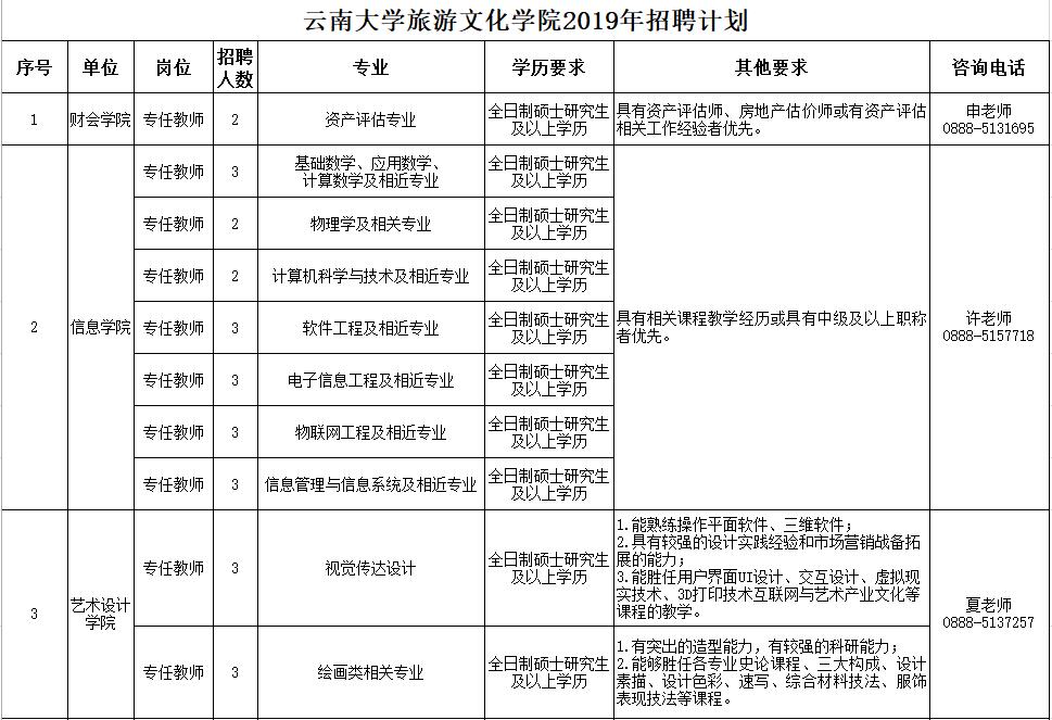 附件:云南大學(xué)旅游文化學(xué)院2019年招聘計(jì)劃 2019.3.15